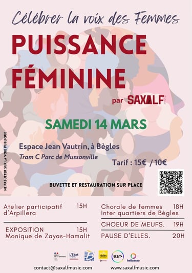La Puissance Féminine est une soirée artistique et engagée proposée par Saxalf dans le cadre de sa saison culturelle, à l’occasion du mois de mars, mois internationalement dédié aux droits des femmes. L’événement célèbre l’expression, la force et la créativité féminines à travers une programmation portée par des artistes locales et de proximité